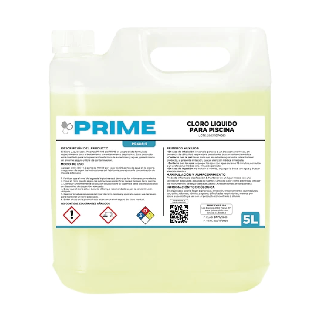 El Cloro Líquido para Piscinas PR408 de PRIME es un producto formulado especialmente para el tratamiento y mantenimiento de piscinas. Este producto está diseñado para la higienización efectiva de superficies y aguas, garantizando un entorno seguro y libre de contaminación.