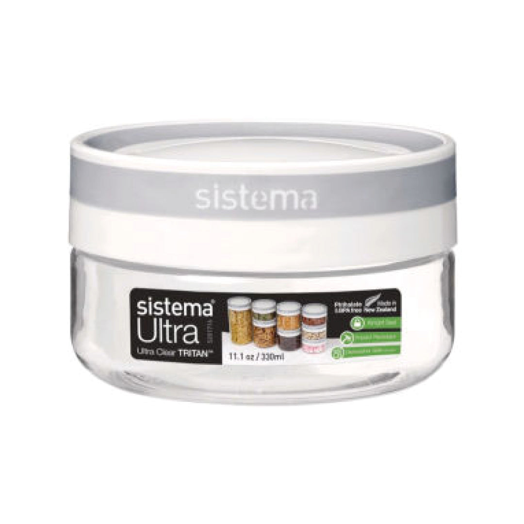 CONTENEDOR REDONDO 330 ML Los contenedores Sistema® Ultra Round están hechos de plástico TRITAN ™ ultra claro de alta calidad que son perfectos para mostradores y alacenas. Simplemente llene su recipiente con comida y gire la tapa hermética para cerrar. Los contenedores de latas Sistema® Ultra Round cuentan con tapas de rosca con cierre hermético que se pueden abrir y cerrar con un cuarto de vuelta rápido. Hecho de plástico TRITAN ™ de alta calidad, resistente a impactos y rayones, su comida se mantiene fresca por más tiempo. Este producto es apilable y seguro para usar en el lavavajillas (en la rejilla superior) o en el refrigerador y congelador. Longitud de la unidad (cm) 10 Ancho de la unidad (cm) 10 Altura de la unidad (cm) 7,45