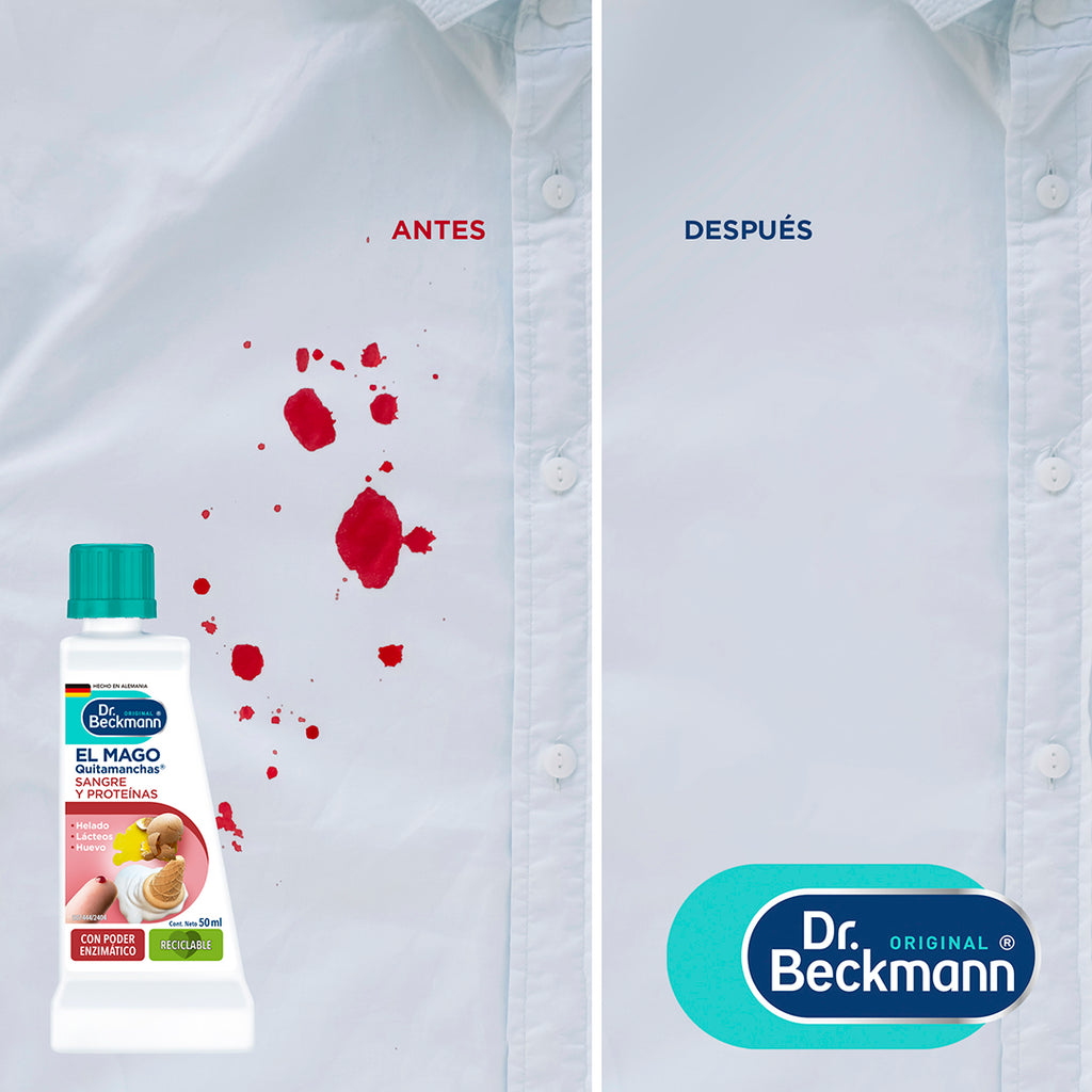 ¡Adiós a las manchas más difíciles! 💪 El Quitamanchas Dr. Beckmann – Sangre y Proteínas está especialmente formulado para eliminar eficazmente manchas orgánicas como sangre, leche, huevo, sudor, vómito y otras basadas en proteínas — incluso las más secas y rebeldes.