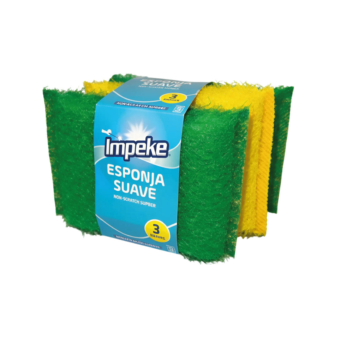 El Pack de 3 Esponjas Fibra Impeke es el aliado perfecto para la limpieza diaria en tu hogar. Cada esponja ofrece una doble cara funcional, combinando una suave esponja absorbente y una fibra abrasiva para atacar distintas suciedades.