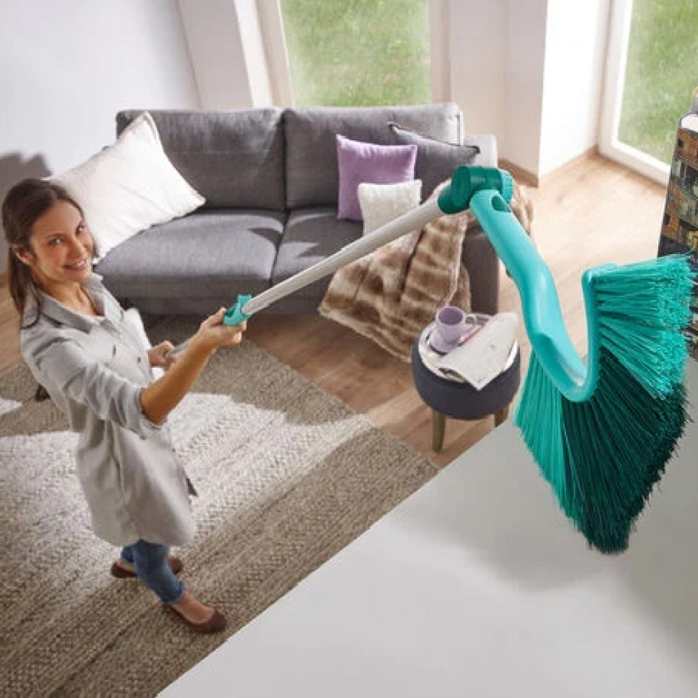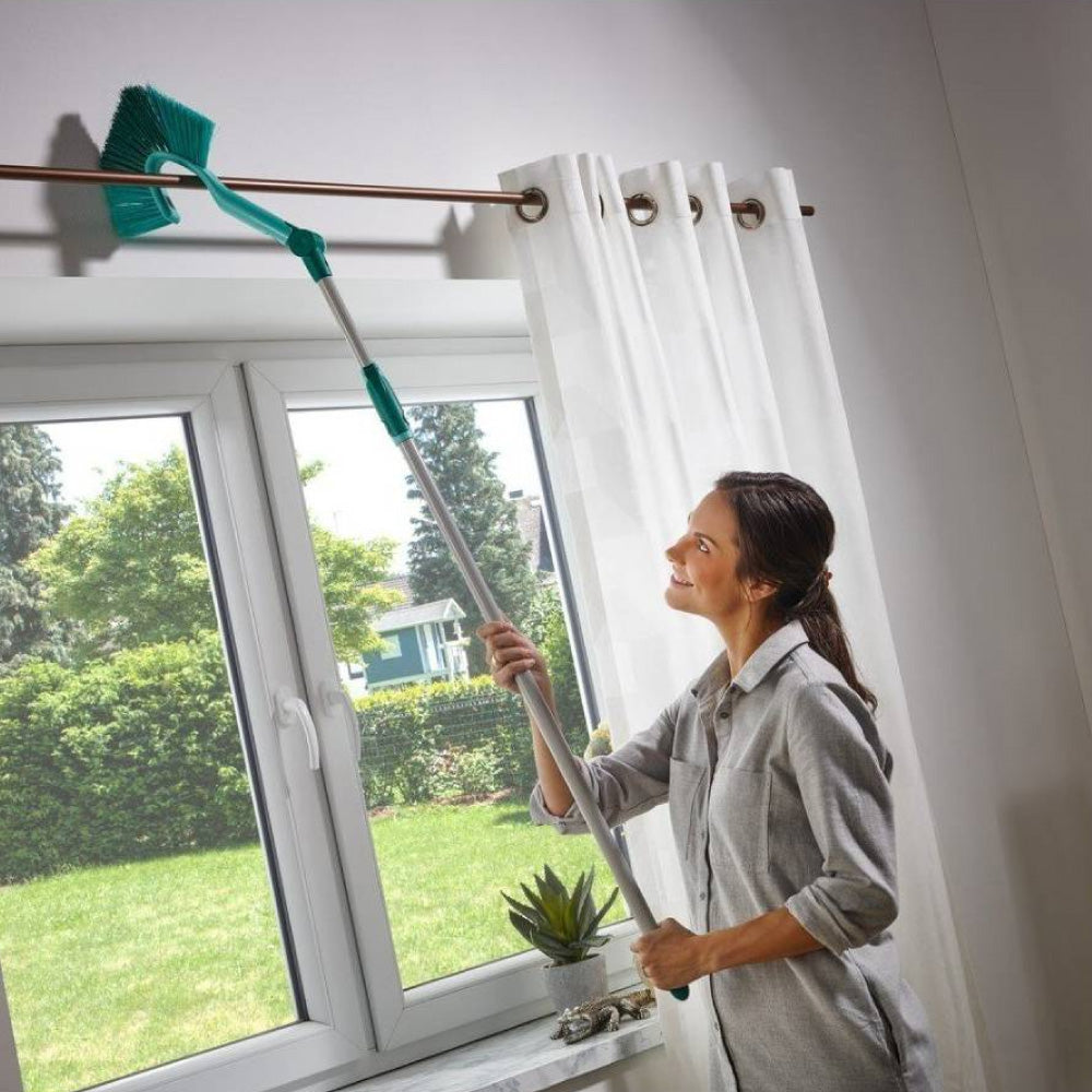 La escobilla para polvo de Leifheit se puede utilizar con todos los palos con sistema de Click de Leifheit. Además, la escobilla para polvo tiene una forma especial con una abertura redonda para poder limpiar incluso detrás de las barras para cortinas.