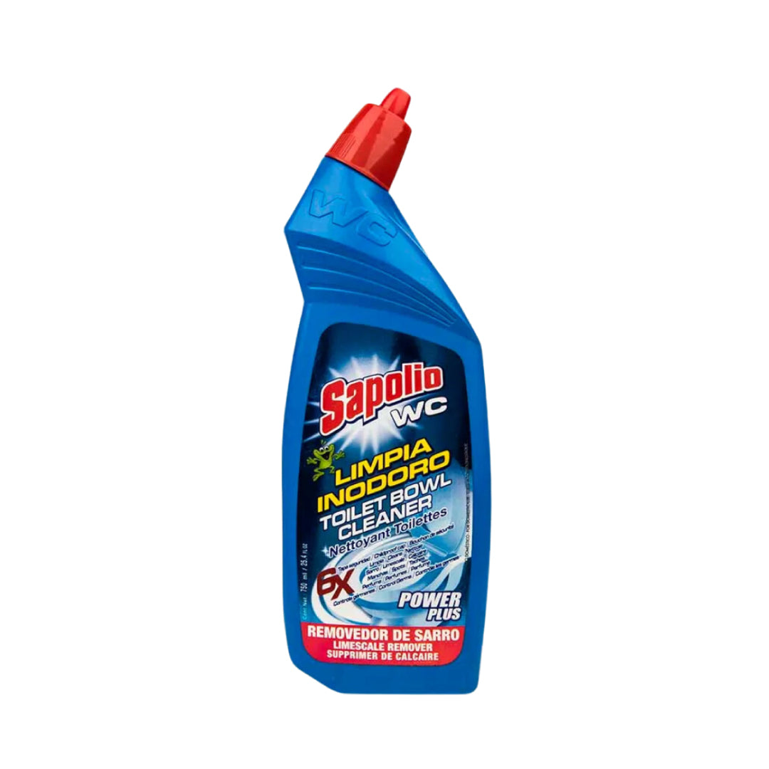 Este es un limpiador para inodoros de la marca Sapolio. Su fórmula potente elimina las manchas y los gérmenes, dejando tu inodoro limpio y fresco.