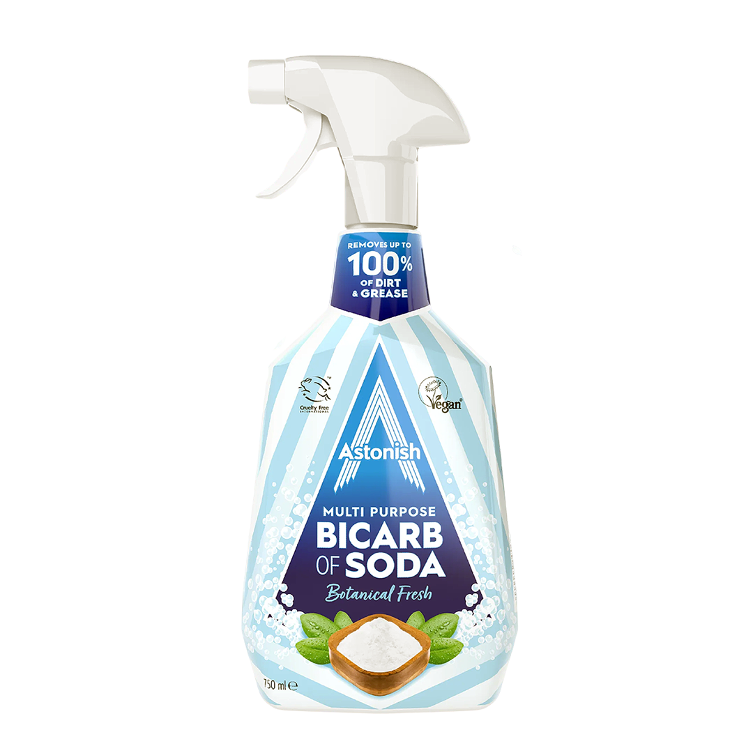 El Limpiador Multiuso con Bicarbonato de Sodio de Astonish es el "héroe" de la limpieza en el hogar. Aprovecha el poder natural del bicarbonato para eliminar la grasa más difícil y la suciedad incrustada, devolviendo el brillo a tus superficies sin esfuerzo y con una frescura inigualable