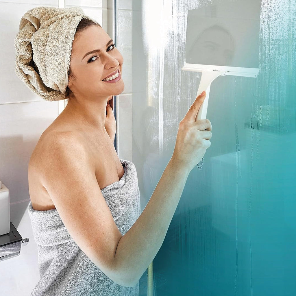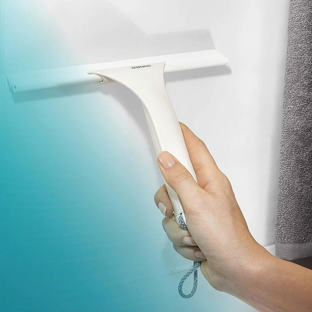 Elimina fácilmente los restos de agua y evita la formación de manchas de cal sobre las paredes de la ducha, mamparas y azulejos.