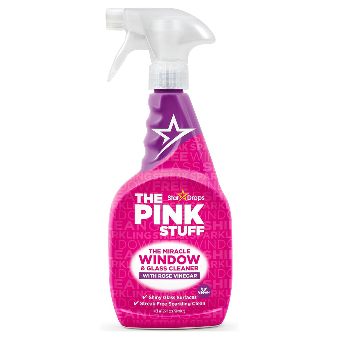 The Pink Stuff Miracle Limpiavidrios con Vinagre de Rosas es un potente limpiavidrios en spray, enriquecido con vinagre de rosas, que elimina eficazmente la grasa y la suciedad de ventanas, espejos y otras superficies de vidrio y cristal. Con un aroma fresco y afrutado, el spray deja todas las superficies de vidrios limpias, sin rayas ni aureolas.