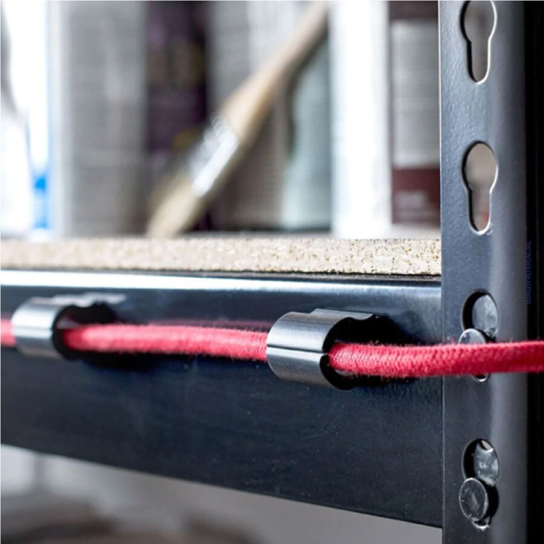 Guías para llevar cables hechas de goma flexible. Se pueden sacar y poner cables, Se adhieren con cinta doble contacto incluida. Se pueden pintar.
