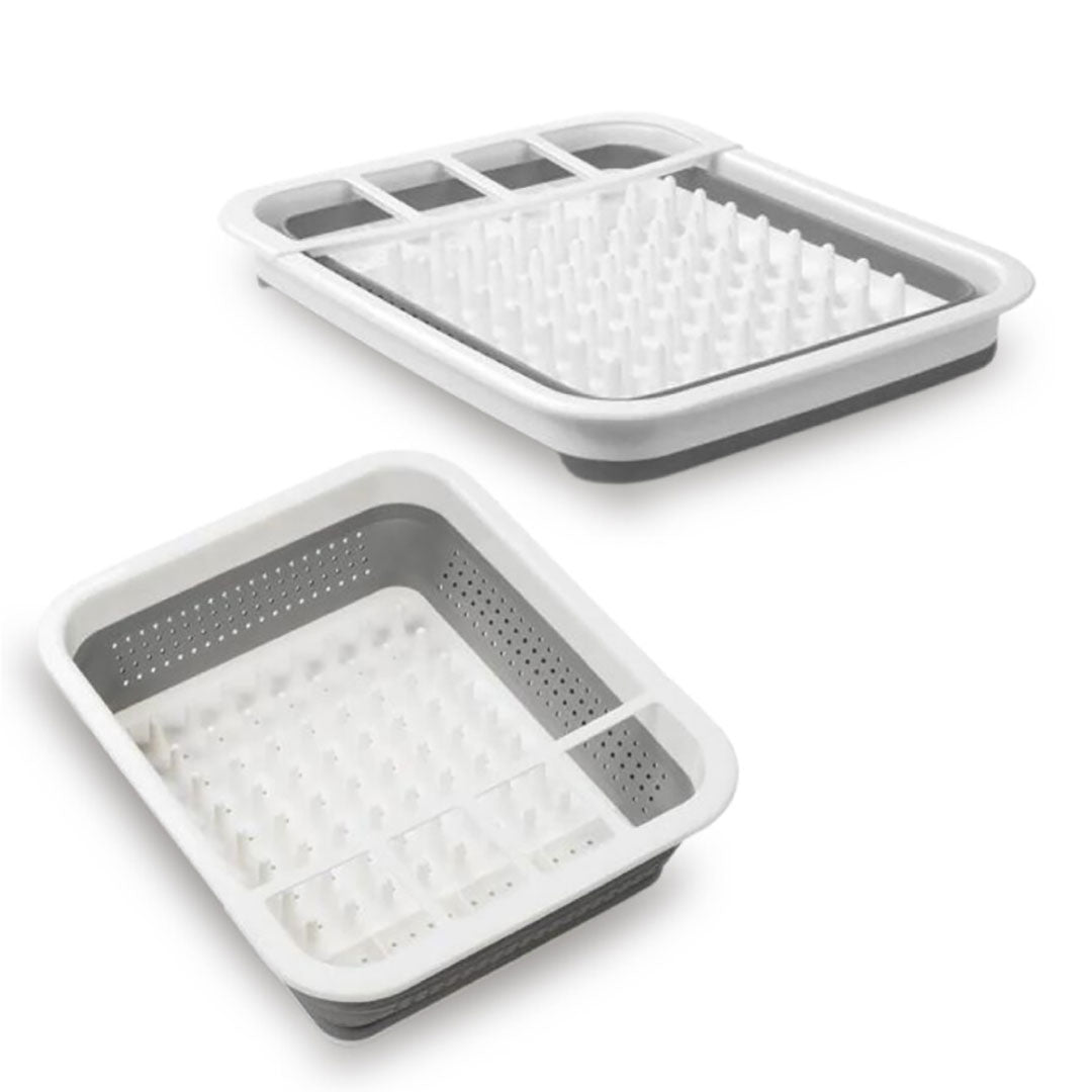 El material flexible permite que el estante para platos se pliegue plano para ahorrar espacio y aprovechar al máximo la encimera o fregadero de su cocina. Se puede usar con un tapete de secado o una tabla de drenaje.
