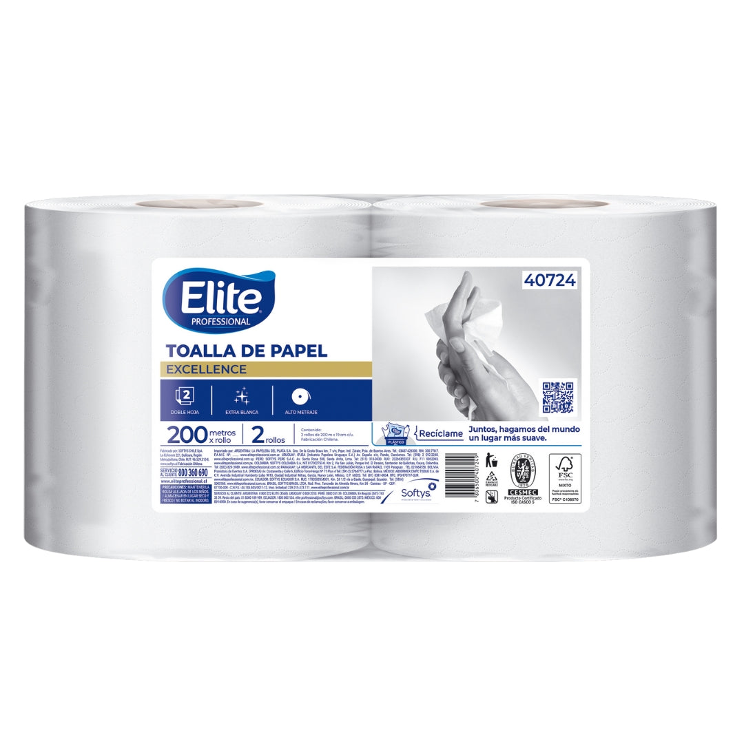 Toalla de papel Doble Hoja Elite 2x200 mts